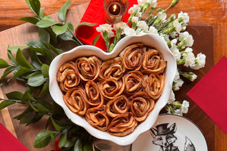 NOTE: Because the sizes of apples and baking dishes vary, you may find yourself with extra slices or pastry dough. If that’s the case, these can be made and baked as individual roses. The cooking time is the same. Simply put one ‘rose’ in an oven safe bowl or dish and make a couple of extra for yourself!